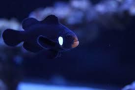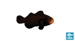 The ora midnight clownfish is black from head to tail. It is completely lacking stripes and has a slight bit of orange on its face which goes away with age. Ora is also releasing the domino clownfish which is a variant of the all black form.