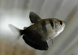 The big anal fin is fan shaped and black in hue. Peaceful alone it becomes aggressive. While the wild black widow tetra is dark in color consider the many colored varieties that have been captive bred.