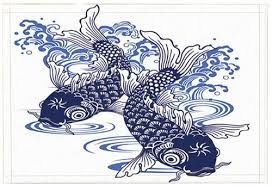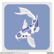 Blue and white koi. Koi are a cultural symbol for overcoming adversity. Some of the major colors are white black red yellow blue and cream. Favorite add to.