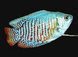 Male and female dwarf gourami. The powder blue dwarf gourami is a captive bred color morph developed from the dwarf gourami. I lik the littel guys they seam to be smarter to.
