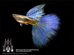 Pada bagian sirip dan ekor mempunyai warna biru dilengkapi dengan bintik totol hitam. A blue with half colored blue body. The guppy poecilia reticulata also known as millionfish and rainbow fish is one of the world s most widely distributed tropical fish and one of the most popular freshwater aquarium fish species it is a member of the family poeciliidae and like almost all american members of the family is live bearing.