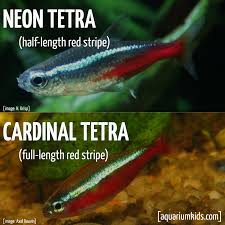 The cardinal tetra will have the red stripe the full length of its body on the lower half whereas the neon tetra will have the red stripe only half way. These fish are delicate and don t have much in terms of defense so it s best. As mentioned earlier cardinal tetras are extremely friendly.