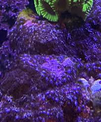 Out of stock. This coral requires bright lighting and medium to strong water movement. This is an aqua cultured legally obtained purple clove polyp from indonesia.