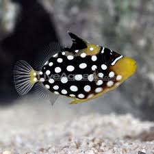 The common name of this trigger is quite accurate given their general personality. Tiny baby clown trigger fish for sale may be skittish and not adjust as well. The lower half of the head and body have large white spots.