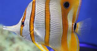 Copper banded butterfly fish. They are best in a species tank a community only if it is very large and spacious. Orange or copper stripes with a black lining on a silver or whitish background. The copperband butterflyfish chelmon rostratus is native to reefs in the pacific and indian oceans.