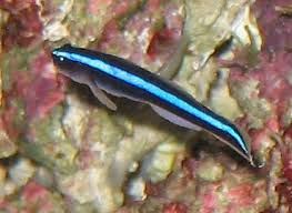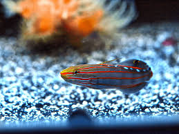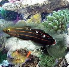 Court jester goby family gobiidae koumansetta origin australia indonesia east pacific central west pacific max length 8 cm 3 1 as aquarium fish minimum volume 150 cm 40 gal hardiness average. Typically when wild caught court jesters are incredibly finicky and rarely survive but our court jester gobies feed on anything thrown at them. The body is green and blue with horizontal orange stripes running the entire length of the body.