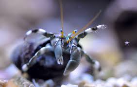 Don t let the small size of the dwarf blue leg hermit crab fool you. In home aquariums this hermit crab prefers sand in which it can forage and dig. Hermit crabs are unique among higher crustaceans like shrimp crabs or crayfish because they generally utilize snail shells as portable shelters for protection because their body is soft and fragile.