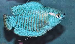 Powder blue dwarf gourami. They have a labyrinth organ which is part of the fish allowing it to absorb atmospheric oxygen into the blood directly. I recently 5 days ago prchase 2 powder blue dwarf gourami.