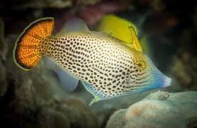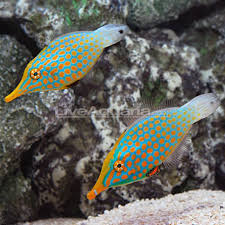 The harlequin filefish or orange spotted filefish is pale blue with about eight longitudinal rows of orange yellow patches. Orange spot filefish for sale 4less. It is best suited for aquariums 30 gallons or larger that does.