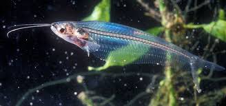 The glass catfish has many names including ghost catfish or phantom catfish.
