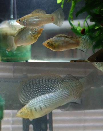 It is affectionately known and named for the large impressive dorsal fin displayed by males. A large male green sailfin molly from four years ago and one of our breeders used in our attempt to create a giant molly. This blog will provide an update.
