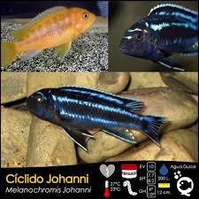 Johanni are african cichlids originating in lake malawi. Should form a large proportion of the diet. They are classified as pseudotropheus johannii formerly melanochromis johannii.