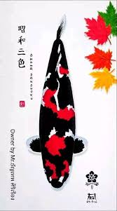 Tancho showa fish koi. Terkadang ada tancho showa yang membawa variasi bulatan jingganya tertindih corak hitamnya.