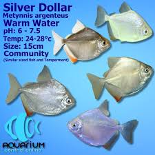 Being a freshwater herbivore this species grows to be roughly 6 inches and will play well with others. In the picture is a 1 5 spotted silver dollar. 3 silver dollar fish.