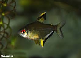 The lemon tetra hyphessobrycon pulchripinnis is a small fresh water fish and an old favorite among aquarists. The basic body color of an adult specimen is a translucent yellow with a pearlescent lustre emanating from the scales in particularly fine specimens. Lemons are deeper bodied and longer comparatively to neon tetras.