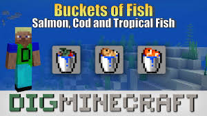 For a list of all types of fish in minecraft see fish disambiguation. 1 items 1 1 minecraft dungeons 2 spawning 2 1 despawning 3 mobs 4 fish like mobs raw cod cooked cod raw salmon cooked salmon pufferfish tropical fish. 1 catching fish 1 1 mechanics 2 junk and treasure 2 1 notes 3 fishing rod durability 4 history 5 issues 6 trivia a fishing bobber in bedrock edition.