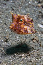 It can also be known as horned boxfish recognizable by its long horns that protrude from the front of its head. Adults are reef fish often solitary and territorial and live around sand. During the mating season they form harems of one male and several females they then begin a wedding dance rising close to.