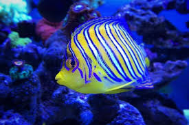 For the most part marine angelfish dwell among shallow reefs. Juvenile emperor angel fish have a dark blue base colour with electric blue and white rings. The former include the dwarf or pygmy angelfish from the centropyge genus which barely exceed 5 inches 12 5 cm in length.