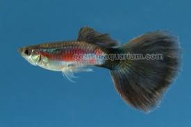 Neon blue tuxedo guppy. Their tail fins are a combination of blue purple and black. Mempunyai corak di sirip ekor serta sirip punggungnya. Regarding the neon blue tux guppies these fish are bright blue.