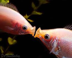 These fish are air breathing. Also known as pink kissing gourami kissing fish or kissers kissing gouramis are a favorite for many fish keepers. They are generally a tolerant species but males may occasionally fight by pressing their lips together i e kissing.