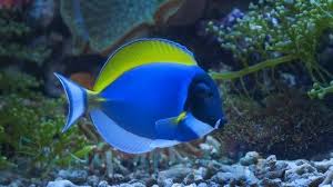 If you re looking for a fish that will try to shank any new additions using the blade at the base of its tail the powder blue tang might just be the fish for you. It is prized for its vivid colors and bold markings with several varying shades of blue accented by yellow and white. The powder blue tang like most fish in the family acanthuridae is herbivorous eating mostly benthic algae.
