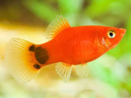 Red mickey mouse platy. Xiphophorus maculatus common name. Ikan platy malibu sunset. My platy popping a little mickey out.