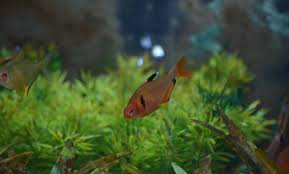 They have red bodies and fins with a black spot in the middle of their sides. The red eye tetra is noted for the bright red spot near its eyes and the silvery golden hue on its body. They work well in large groups as they will be shy if kept with fewer than 6 individuals.