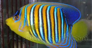 The regal angelfish is one of the smaller varieties of saltwater angelfish growing to be approximately 9 8 inches in length.