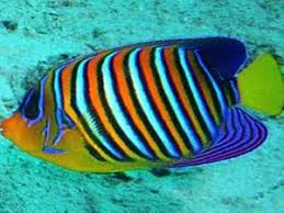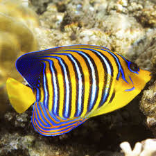 The regal angelfish pygoplites diacanthus is also known as the royal angelfish. To entice a regal angelfish to eat use a diet of fresh shrimp and chopped seafood. It will reach around 9 8 in length and is adorned with white and orange stripes edged in blues and blacks.