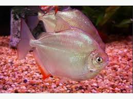 Silver tropical fish with red fins. The silver dollar fish comes from south america and has been a favorite among tropical fish hobbyists for many years. It belongs in the cyprinidae family. They are found in brazil and french guyana and can reach up to 6 5 inches.