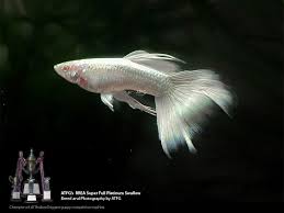 Top quality tropical and coldwater fish. Guppy snow white female. Distinguishing a white guppy male from female is a very simple task.