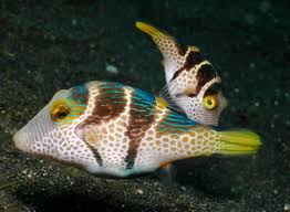The stars and stripes puffer is commonly referred to as the whitespotted pufferfish or hispid pufferfish. It is light grey in color or greyish or yellowish and clearly covered with more or less regular white points that become concentric contrasting white and dark grey lines that radiate around the eyes and pectoral fins. Also at christmas island and cocos keeling islands in the eastern indian ocean and lord howe island in the tasman sea.