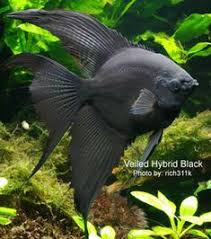 Black veiltail angelfish are usually weakish and difficult to find. Black angel fish 4 5cm. Angelfish can grow up to 6 inches long these fish should be kept in a tank no smaller than 20 gallons in capacity the bigger the better.