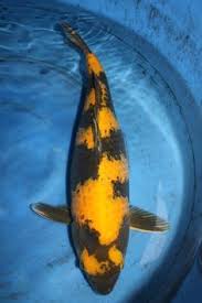 This koi has a yellow base color with sumi markings the yellow should be of the same hue over the whole body of the koi. They can come in three sifferent base colors. The white red and yellow varieties are called shiro bekko 白 aka bekko 赤 and ki bekko 黄 respectively.