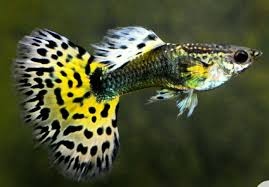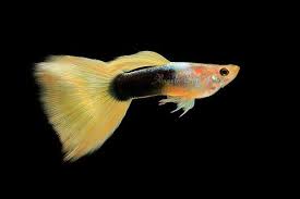 Yellow male guppies are generally shorter slimmer in length have bright colors attractive tail and patterns large fins anal fin is modified into gonopodium. Generally a medium size fish. Tuxedo guppies have two shades colors.