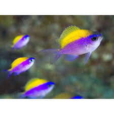 Edge of bone under eye smooth no notch hidden by scales. I believe that neopomacentrus azysron is characterized by a solid yellow tail most of. As you can see in the picture they re almost all dark grey with a yellow spot on their caudal fin with black tips.